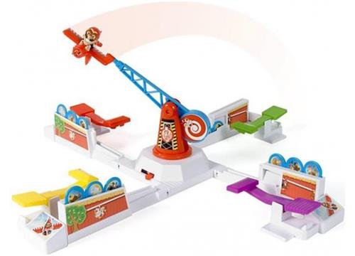 | Verpakkingsinhoud | Stef Stuntpiloot, vliegtuig, standaard met 4 armen, 4 kippenhokken, vliegarm, 12 fiches en stickers |