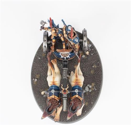 De Stormstrike Chariots zijn de specialistische breeklijneenheden van de Stormcasts. Getrokken door twee speciaal gefokte gryph-chargers zijn deze strijdwagens snel genoeg om vijandelijk vuur te ontwijken, en als reactie hierop uit te halen met een krachtige charge of denderende langeafstandssteun. De Stormstrike Chariot draagt zelf het makersmerk van Grungni zelf en lijkt op de schilden die door Vindictors worden gehanteerd. De berijders dragen een unieke lichtere variant van de gloednieuwe thunderstrike pantsers. Terwijl de bestuurder is bewapend met een stormstrike-axe, kan de Stormcast-passagier worden gebouwd om ofwel een grote stormboog of een stormachtige speer te hanteren.