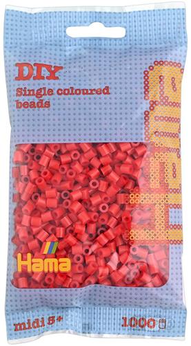 Deze zak bevat 1000 Hama strijkkralen in de kleur rood. Geschikt voor kinderen vanaf 5 jaar. De verpakkingsgewicht van de strijkkralen is 80 g. De strijkkralen zijn gemaakt van kunststof en worden geleverd zonder specifiek personage. De EAN-code van dit product is 0028178207052 en het is voorzien van het kwaliteitslabel CE van Hama.