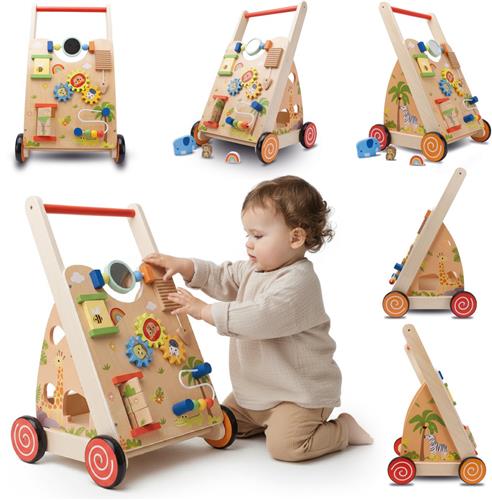 Ontdek de houten loopwagen Sun Baby 2-in-1 XXL, perfect voor de eerste stapjes van je kleintje! Deze innovatieve loopwagen is niet alleen een veilige steun tijdens het leren lopen, maar ook een fascinerend interactief speelgoed. Dankzij de combinatie van een loopwagen en een speelbord stimuleert het de manuele, sensorische en motorische vaardigheden van je kind op een speelse manier.
