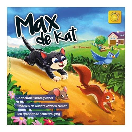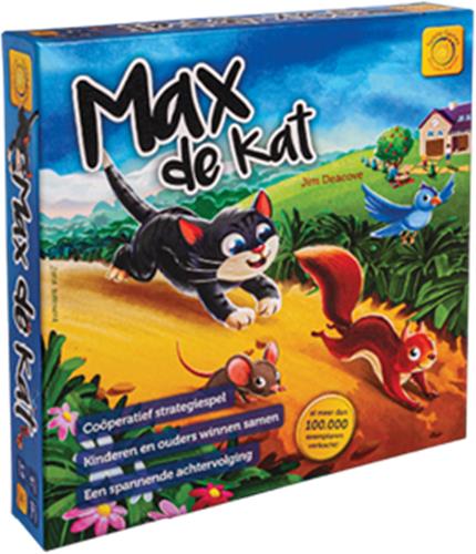 Max de kat is een populair coöperatief strategiespel voor 1 tot 8 spelers vanaf 4 jaar. Max de kat is een zeer favoriet spel. Deze vernieuwde uitgave heeft een driedimensionaal spelbord waarbij de boom op het spelbord staat en houten speelfiguren en houten dobbelstenen. Vogel, muis en eekhoorn zijn op weg naar hun holletje in de boom. Max de kat heeft honger en zit achter de kleine diertjes aan! Gelukkig kan Max naar huis terug gelokt worden met een lekker hapje, zodat de kleine diertjes een voorsprong krijgen.