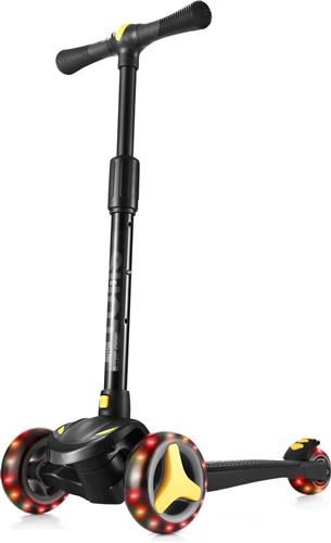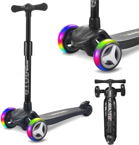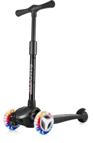 Laat de allerkleinsten meegenieten met EXTRA BREEDE WIELEN! Het ontwerp met drie wielen zorgt voor extra stabiliteit en de coole oplichtende LED's op de stuurpen en wielen zorgen voor extra zichtbaarheid voor extra veiligheid. Dankzij de high-end wielen voelen kinderen zich altijd soepel en in controle als ze over het trottoir trappen; bovendien kunnen ze gemakkelijk de achterwielkap gebruiken om te remmen en de snelheid te controleren. De kinderscooter is stevig genoeg om tot 50 kg te dragen. Het dek is laag bij de grond, zodat kinderen er gemakkelijk op en af kunnen springen. Breed genoeg om beide voeten op het dek te zetten, zodat kinderen niet hoeven te duwen maar kunnen genieten van de rit.