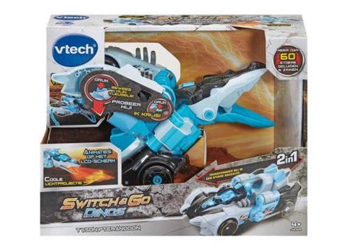Maak kennis met de fantastische Switch &Go Dino's - Tyson Pteranodon! Dit stoere speelgoed kan eenvoudig worden omgetoverd tot een supersnelle raceauto. Laat je verbazen door meer dan 60 coole zinnen en geluiden die Tyson Pteranodon tot leven brengen. Met het lcd-scherm kun je bovendien genieten van toffe animaties tijdens het spelen.