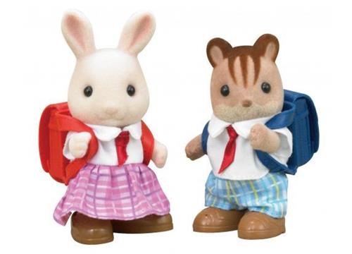 Ontdek de schattige wereld van Sylvanian Families met de schoolvrienden set, bestaande uit Rosa Wit Konijn en Tim Eekhoorn. Deze charmante figuren zijn perfect gekleed in hun uniforme outfits met bruine schoenen, een geruite broek, een wit shirt, een rode stropdas en een rugzak. Ze zijn helemaal klaar voor hun spannende wandeling naar de Streekschool!