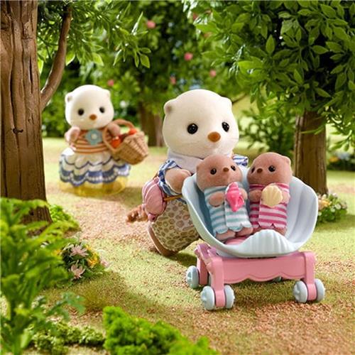 De Sea Otter-familie bestaat uit prachtige karakters met kleine oren en ruitvormige neuzen. De twee gewiegde baby's kunnen comfortabel meerijden in de schelpenkinderwagen, terwijl de schoudertas perfect is voor het meenemen van hun favoriete schelpjes.