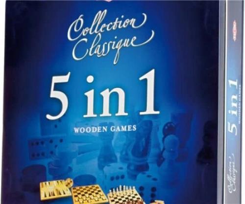 Tactic 5 in 1 Hout - Schaken - Dammen - Tic Tac Toe - Backgammon en Domino