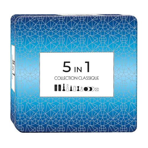Met de Tactic 5 in 1 Hout kun je genieten van 5 verschillende klassieke spellen in één blikken trommel. Dit kwalitatief hoogwaardige spel bevat schaken, dammen, tic-tac-toe, backgammon en domino. De doos bevat een tweezijdig houten bordspel voor schaken en dammen, evenals een tweezijdig houten bordspel voor backgammon en tic-tac-toe. Daarnaast zijn er houten schaakpionnen, domino's en backgammon-, tic-tac-toe- en damschijven inbegrepen, samen met 2 dobbelstenen en spelregels. Met een verpakkingsgewicht van 1.65 kg is dit spel ideaal voor zowel kinderen als volwassenen om van te genieten. Ontdek urenlang speelplezier met dit veelzijdige en compacte bordspel!