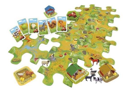 | Verpakkingsinhoud | - 12 tweezijdig bedrukte speelborddelen - 55 kaarten - 4 opvouwbare schuren (3 delen per schuur) - 17 3D dieren - 5 Trekker-speelstukken - Spelregels |