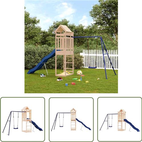 Geef je kinderen de ultieme speelervaring met deze houten speelset van The Living Store! Dit speeltoestel transformeert je achtertuin in een betoverende speeltuin vol fantasie en avontuur. Met een stevig frame gemaakt van massief grenenhout biedt deze speelset zowel stabiliteit als duurzaamheid. De "A"-vormige poten van de kinderschommel zorgen voor evenwicht en veiligheid tijdens het spelen.