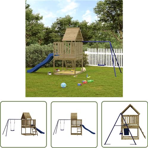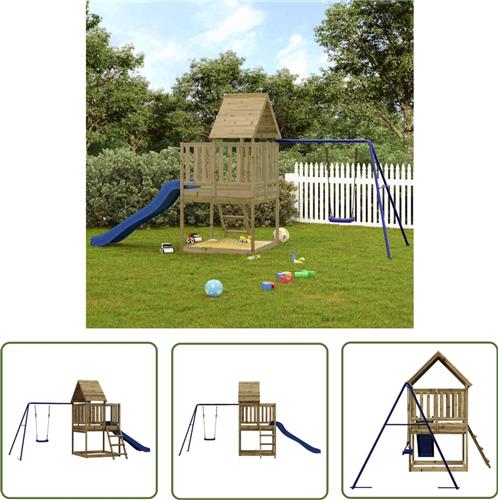 Met de Living Store Houten Speelset creëer je een fantasierijke speeltuin in je eigen achtertuin. Dit duurzame speeltoestel is gemaakt van geïmpregneerd grenenhout, waardoor het bestand is tegen weersinvloeden en langdurig speelplezier garandeert. Het stevige frame en de stabiele "A"-vormige poten van de schommel zorgen voor een veilige speelomgeving voor kinderen van 3 tot 8 jaar.