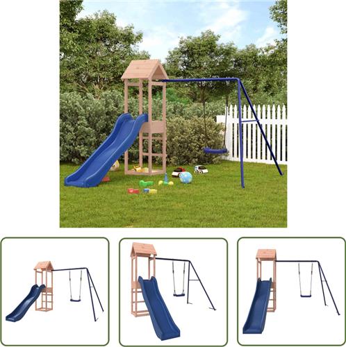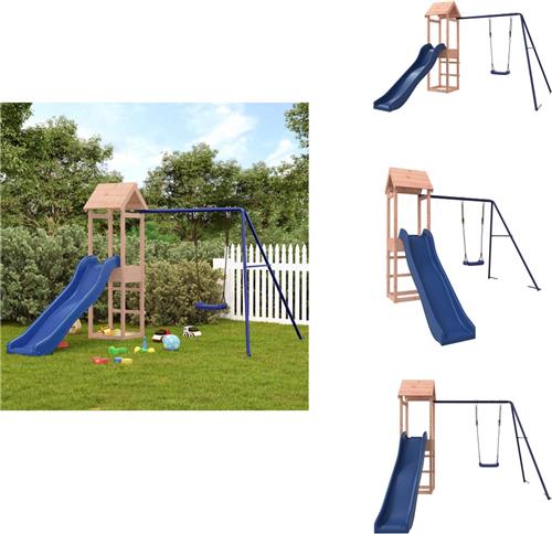 Laat je kinderen volop genieten van buitenspelen met de Living Store Speelset! Dit houten speeltoestel met glijbaan transformeert je tuin in een fantasierijke speeltuin waar eindeloos avonturen beleefd kunnen worden. Gemaakt van duurzaam massief douglashout, biedt dit speeltoestel niet alleen stevigheid en stabiliteit, maar heeft het ook weinig onderhoud nodig dankzij de natuurlijke weerbestendigheid van douglashout.