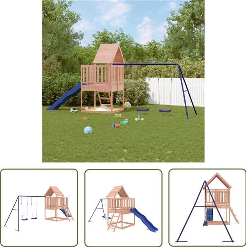 Dit speeltoestel wordt geleverd met een dubbele schommelset en een golvende glijbaan, allemaal gemaakt van hoogwaardige materialen. Met totale afmetingen van 564 x 235 x 228 cm biedt dit speeltoestel voldoende ruimte voor kinderen om te spelen en creatief te zijn. Door de aanbevolen maximale leeftijd van 100 jaar kunnen zelfs volwassenen genieten van dit speeltoestel, zij het onder toezicht van de kleintjes natuurlijk.