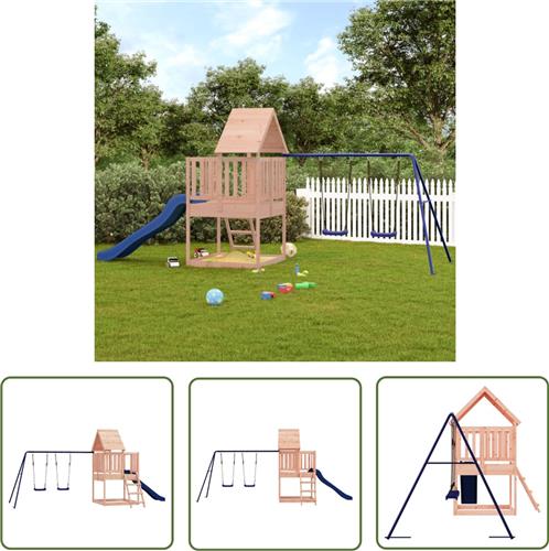 The Living Store Speeltoestel - Houten Speelhuis met Dubbele Schommel en Golvende Glijbaan - 564 x 235 x 228 cm