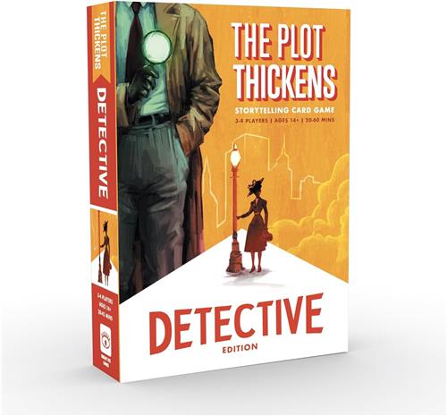 Ontketen je Innerlijke Detective met The Plot Thickens Detective! Ben jij een snelle denker en een meester in het oplossen van mysteries? Dan is The Plot Thickens Detective editie het perfecte spel voor jou en je vrienden! Stap in de schoenen van een bekwame detective en gebruik je verbeeldingskracht om intrigerende verhalen te creëren met behulp van verhaalkaarten met mensen, plaatsen en dingen. Hoe werkt het spel? In The Plot Thickens Detective draait alles om het bouwen van verhalen in het detectivegenre. Grijp je kans om de volgende Sherlock Holmes te worden! Neem de leiding over je personage en hun lot door slim gebruik te maken van verhaalkaarten. Elke kaart die je gebruikt om je verhaal te weven, verdient je waardevolle plotpunten. Hoe complexer en meeslepender je verhaal, hoe meer punten je verzamelt. Durf jij het aan om het epische einde van het spel vorm te geven?
