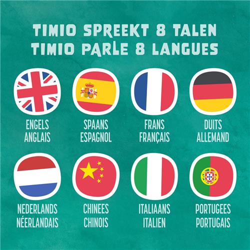 De TIMIO muziek- en verhalenverteller is veelzijdig en kan worden ingesteld in maar liefst 8 talen: Nederlands, Duits, Frans, Engels, Spaans, Italiaans, Portugees en Mandarijn. Daarnaast is elke schijf compatibel met alle talen, waardoor kinderen op een speelse manier een nieuwe taal kunnen leren. Verzamel alle 4 extra TIMIO disk sets voor nog meer variatie en plezier voor jouw kind.