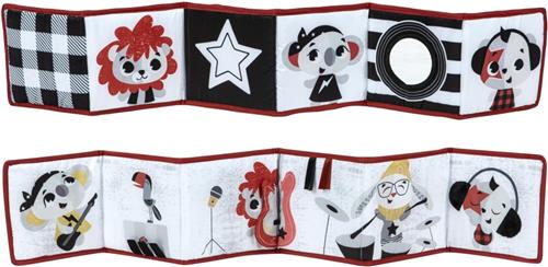 Het Tiny Love Rockers dubbelzijdig boek uit de Rockers-collectie is een ideaal boekje dat de ontwikkeling van je baby vanaf dag één ondersteunt. Het ontwerp van het boekje is niet alleen cool, maar ook educatief. Aan de ene kant stimuleert het contrasterende zwart-witte ontwerp de visuele ontwikkeling van jongere baby's. Aan de andere kant moedigen de leuke figuurtjes wat oudere baby's aan tot communicatie en hechting, terwijl ze tegelijkertijd de motoriek bevorderen.