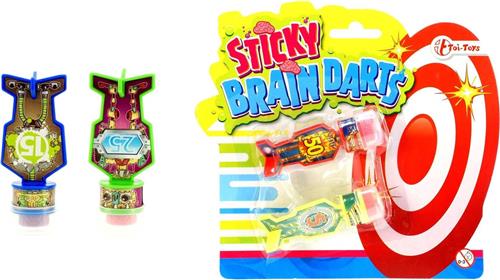 Met de Toi Toys Sticky figuur dart op kaart heb je eindeloos speelplezier! Dit assortiment bevat 1 stuk sticky figuur dart op een kaart, waardoor je direct klaar bent om te spelen. De kleverige darts zorgen voor een spannend behendigheidsspel waar zowel jongens als meisjes van zullen genieten. De verpakking bevat 2 stuks sticky brain darts, waardoor je meteen kunt beginnen met spelen.