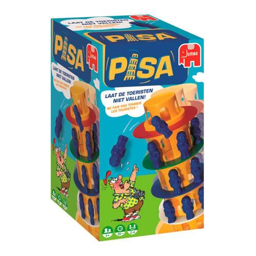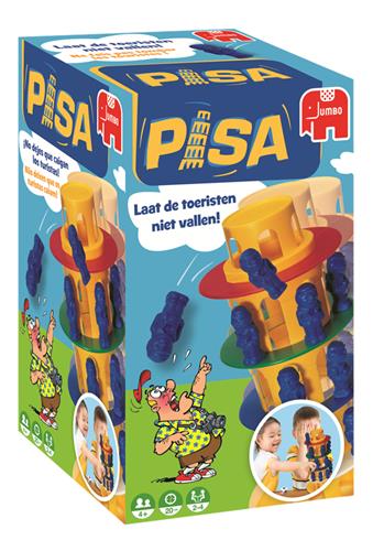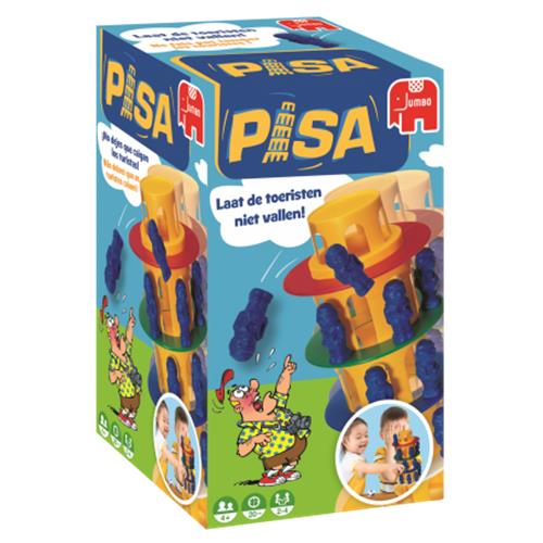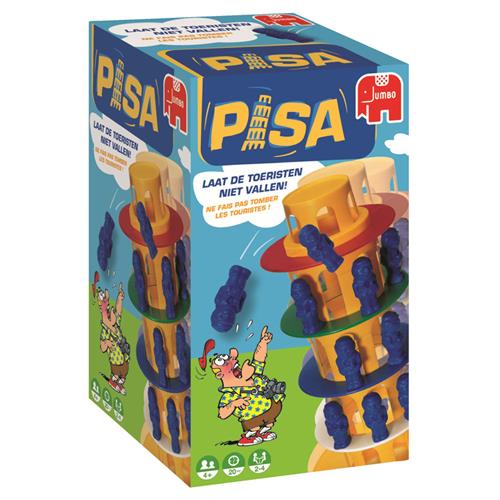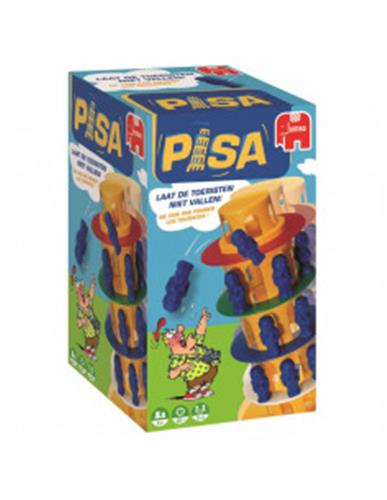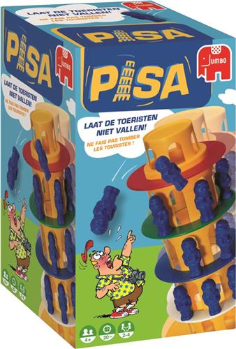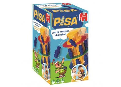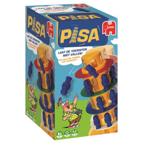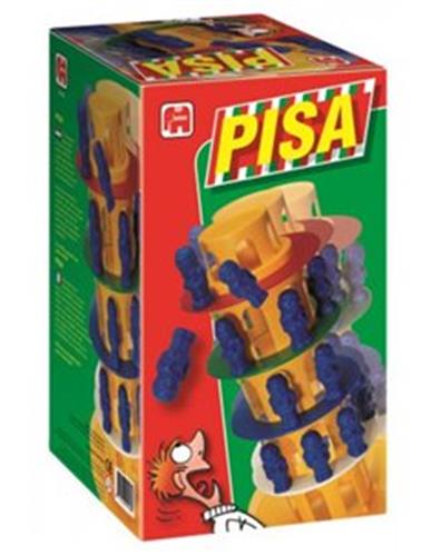 24 mannetjes staan klaar om op de wankele toren van Pisa te worden gezet. Maar... een mannetje te veel aan één kant en de toren helt verraderlijk over. Als de toren eenmaal uit evenwicht raakt is er geen houden meer aan, de mannetjes vliegen er aan alle kanten af. Door de ringen aan de toren te verwisselen wordt het spel Pisa moeilijker of makkelijker. Voor 2-4 spelers. Spel is geschikt voor kinderen vanaf 5 jaar.