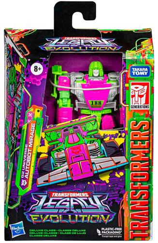Laat een storm van giftige vernietiging los met de G2 Universe Autobot Mirage actiefiguur van 14 cm hoog! Deze transformerende Transformers actiefiguur voor jongens en meisjes is geïnspireerd op de originele kleurontwerpen uit de G2 speelgoedlijn uit de jaren '90. Het levendige kleurenschema van dit Transformers speelgoed zal zeker opvallen in de collectie van elke fan. Deze G2 Universe Autobot Mirage is een geweldig cadeau voor Transformers liefhebbers en verzamelaars. Kijk uit naar meer Transformers Legacy speelgoed om aan je collectie toe te voegen (ieder afzonderlijk verkocht, afhankelijk van beschikbaarheid).