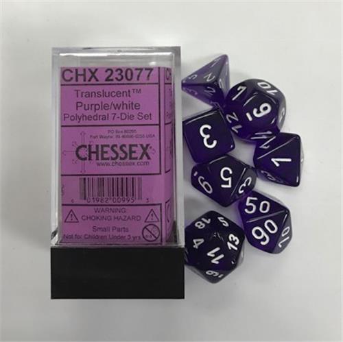 - Bij Spelhuis kun je Translucent Purple/white Polyhedral 7-Die Set kopen voor de prijs van € 11,99. Dit is vandaag de goedkoopste webshop.