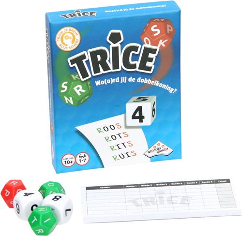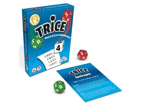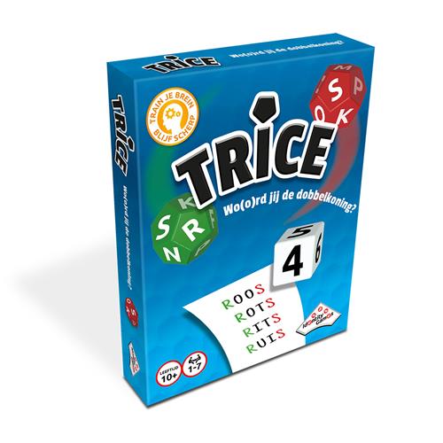 Wo(o)rd jij de dobbelkoning? Met Trice kun je spelen en tegelijkertijd je hersens trainen! Gooi een groene (beginletter), rode (eindletter) en witte dobbelsteen (aantal letters). Schrijf binnen één minuut zoveel mogelijk woorden op met de beginletter, eindletter en het aantal letters dat je hebt gegooid. Elk woord is 1 punt. Wie na zes rondes de meeste punten heeft, is de winnaar!
