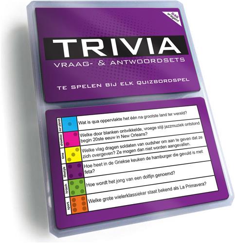 Ben je op zoek naar een spannende aanvulling voor je Triviant bordspel? Dan is de Triviant Vragen Aanvulset in de paarse editie precies wat je nodig hebt! Deze set bevat maar liefst 648 gloednieuwe vragen die verdeeld zijn over verschillende categorieën, zoals Geografie, Entertainment, Cultuur, Historie, Wetenschap en Sport. Hiermee blijft het spel uitdagend en verrassend, zelfs voor de meest doorgewinterde Triviant spelers.