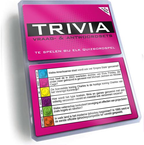 - Bij Bol.com kun je Triviant Vragen Aanvulset, Vraag en Antwoord - Versie Roze (Nieuwe Vragen 2023 - 2024!) kopen voor de prijs van € 16,95. Dit is vandaag de goedkoopste webshop.