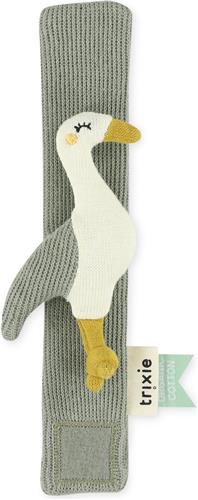 De Trixie armbandrammelaar met de afbeelding van een reiger stimuleert jouw baby om te bewegen en te ontdekken. Bij elke beweging zal je kleintje genieten van het geluid van de rammelaar. Gemaakt van heerlijk zacht gebreid biologisch katoen, is de polsrammelaar comfortabel om te dragen en kan ook om de enkel worden geplaatst terwijl je baby zijn of haar voetjes verkent. De verschillende texturen van de rammelaar zijn perfect om door de vingertjes ontdekt te worden.