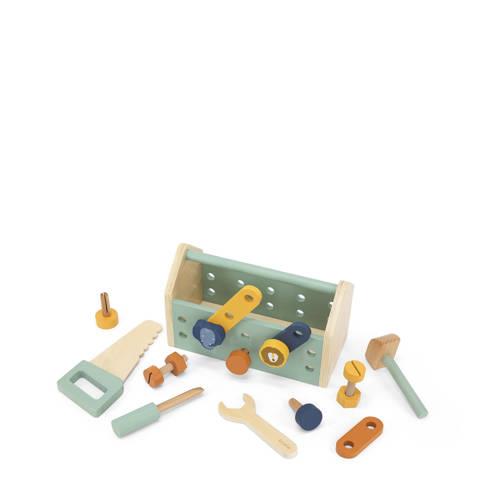 Met handige eigenschappen zoals de verschillende compartimenten en het stevige handvat, is deze gereedschapskist zowel functioneel als stijlvol. Je kunt gemakkelijk al het speelgoed georganiseerd houden en het handvat maakt het eenvoudig om de kist overal mee naartoe te nemen.