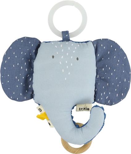 Mrs. Elephant van Trixie is een schattig muziekspeeltje dat perfect is voor baby's en jonge kinderen. Met haar vrolijke uitstraling en zachte materialen trekt ze meteen de aandacht van je kleintje. Het muziekspeeltje speelt rustgevende melodieën af, waardoor het ideaal is voor het kalmeren en troosten van je baby. Dankzij de handige bevestigingsclip kun je Mrs. Elephant eenvoudig aan de wieg, buggy of autostoeltje bevestigen.