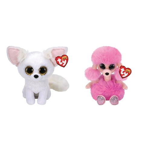 Maak kennis met Phoenix de vos en Camilla de poedel, twee schattige knuffelvriendjes uit de TY Beanie Boo's collectie. Phoenix is een charmante witte vos van 15 cm groot, met grote kraalogen die je meteen zullen betoveren. Hij komt uit de warme woestijn en met zijn grote oren en nog grotere charme, wil hij dolgraag jouw knuffelmaatje worden. Camilla daarentegen is een lieve roze poedel, ook 15 cm groot, met een passie voor tekenen. "When you're in the mood and want to doodle. I'll model for you - draw a pink poodle!" Samen vormen ze een onweerstaanbaar duo.