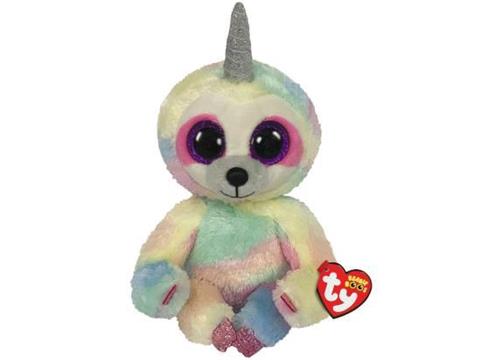 Maak kennis met Cooper Sloth, de schattige knuffel van Ty in de vorm van een Beanie Buddy. Met zijn zachte pluche materiaal en kleurrijke veelkleurige ontwerp is Cooper Sloth de perfecte knuffelvriend voor kinderen vanaf 3 jaar oud. Deze knuffel heeft een hoogte van 24 cm, ideaal voor kleine handjes om vast te houden en mee te spelen.