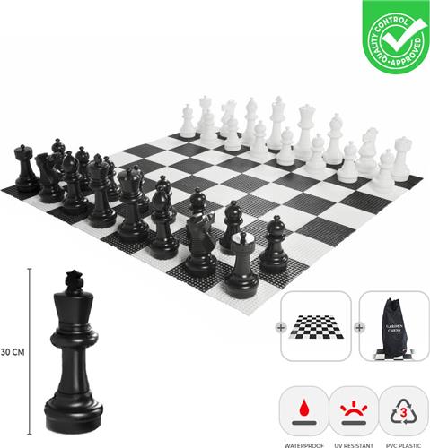 Ubergames - XL buiten Schaakspel - Tactisch Bordspel - Koning 30 cm Hoge kwaliteit - Inclusief Mat en Tas Met kunststof mat en draagtas Klasse en Geweldig