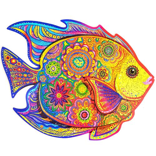 De kleurrijke afbeelding van de glanzende vis neemt je mee naar de diepten van de oceaan, waar je oog in oog komt te staan met verschillende zeedieren, koralen en golven. Dit maakt het puzzelen niet alleen een visuele traktatie, maar ook een mentale uitdaging om elk stukje op de juiste plek te plaatsen.