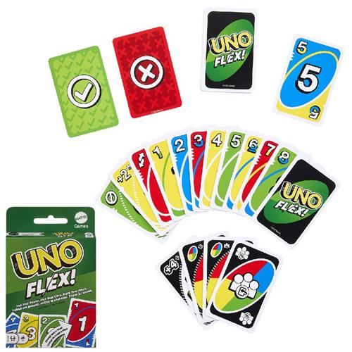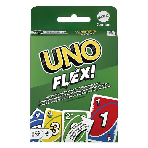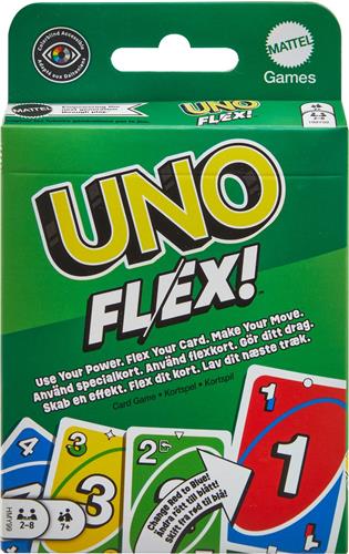 UNO Flex Het kaartspel UNO FLEX is gebaseerd op het geliefde UNO Kaartspel, maar dan met een flexibele draai. Met speciale kaarten kunnen spelers een kaartkleur wijzigen om een match te krijgen. Power kaarten en Flex actiekaarten maken het spel nog uitdagender. Dit kaartspel is geschikt voor 2-6 spelers en is perfect voor spelletjesavonden en familiebijeenkomsten.