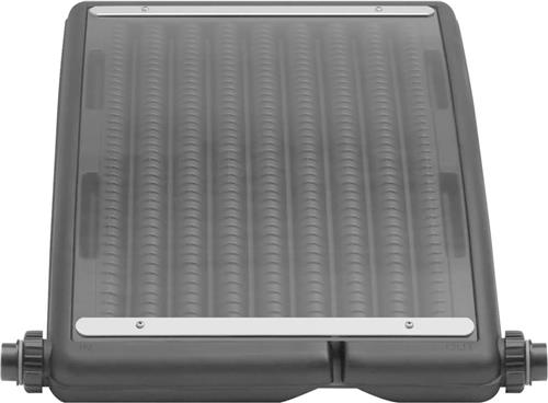 Het zwembadverwarmingspaneel heeft een elegante zwarte kleur en is gemaakt van HDPE, PC en aluminium. De afmetingen van het paneel zijn 72,5 x 46 cm (L x B), terwijl de aluminium poten in hoogte verstelbaar zijn van 26 tot 35 cm. Het paneel heeft een stroomcapaciteit van 10.000 liter per uur en een waterinhoud van 4,7 liter. Het kan geïnstalleerd worden op de grond, op het dak of in een rek, waarbij enige montage vereist is.