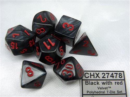 - Bij Spelhuis kun je Velvet Black/red Polyhedral 7-Die Set kopen voor de prijs van € 11,99. Dit is vandaag de goedkoopste webshop.