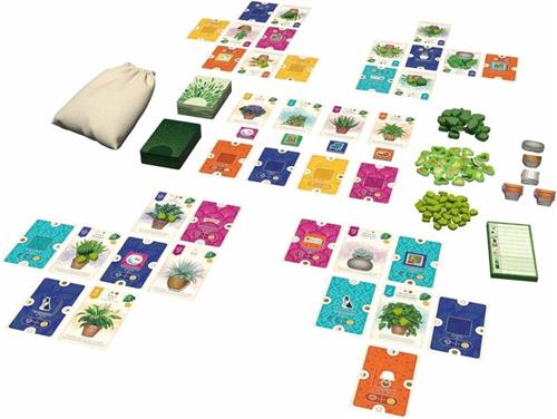 | Verpakkingsinhoud | 60 plantkaarten 60 kamerkaarten 10 overzichtskaarten 5 voorraadkaarten 10 plant opdrachtkaarten 10 voorwerp opdrachtkaarten 10 kamer opdrachtkaarten 1 stoffen zak 40 voorwerpfiches 36 bloempotfiches 45 verzorgingsfiches 36 duimfiches 1 scoreblok 60 houten groenfiches spelregels |