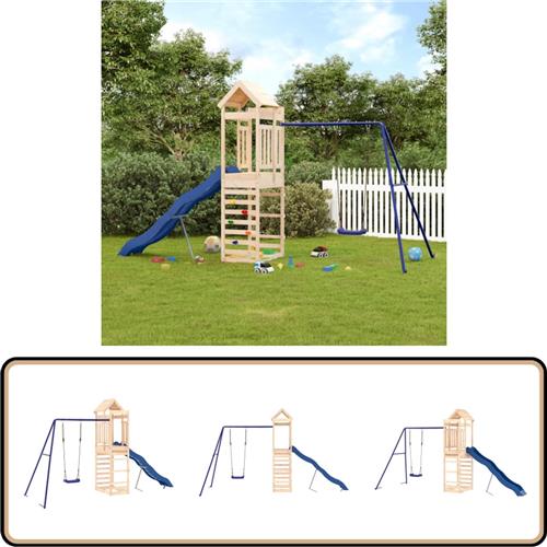 Ontdek het ultieme speelplezier met het vidaXL houten speelhuis! Dit schitterende speelhuis, gemaakt van stevig massief grenenhout, biedt een fantastische speelplek voor jouw kinderen. Met een speeltoestel dat een speeltoren, een schommel en een glijbaan combineert, is avontuur en plezier gegarandeerd. Transformeer jouw tuin in een waar speelparadijs waar kinderen kunnen genieten van klimmen, schommelen en glijden.