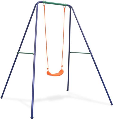 Laat je kinderen genieten van eindeloos buitenspeelplezier met de vidaXL Enkele Schommel in opvallend oranje kleur. Deze stevig gebouwde schommel is gemaakt van duurzaam staal en kunststof, waardoor hij bestand is tegen alle weersomstandigheden. De schommel is eenvoudig te monteren en wordt veilig bevestigd aan het sterke A-frame met stabiele bouten, haken en touwen.