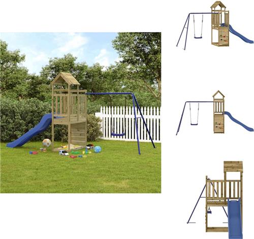 Laat je kinderen genieten van fantasierijke avonturen in de veilige omgeving van het VidaXL Speelhuis van geïmpregneerd grenenhout. Dit duurzame speeltoestel is gemaakt van vacuüm geïmpregneerd grenenhout, waardoor het bestand is tegen rot en weer. Met een stevig en stabiel frame en "A"-vormige poten voor balans, biedt dit speelhuisje een multi-activiteitencentrum met een klimwand, golvende glijbaan, enkele schommel en zandbak.