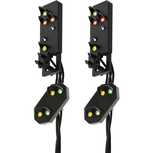De Viessmann Modelltechnik 4751 H0 Lichtsein Met voorsein Lichtseinkoppen is een kant-en-klaar model van de DB. Het bevat twee uitrijseinen van het type '69, elk zonder mast maar volledig uitgerust met 10 LED's en bekabeling. Dit model is ideaal voor montage aan gebouwen of seinbruggen, zoals de Conrad bestelnr. 519603. Het kan eenvoudig worden aangesloten op de multiplexer bestelnr. 519602 of bestelnr. 519607.