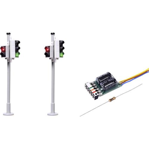 De LED-verlichting zorgt voor heldere en energiezuinige verlichting, waardoor de verkeerslichten goed zichtbaar zijn voor zowel voetgangers als weggebruikers. Met de schaal H0 kunnen deze verkeerslichten gemakkelijk geïntegreerd worden in verschillende modelspoorbanen voor een realistische uitstraling.
