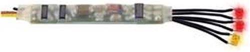 De draden zijn al gesoldeerd op de LED's, waardoor het aansluiten eenvoudig is. De elektronica is slechts 2,5 x 0,4 x 0,3 cm groot en de LED's meten 0,16 x 0,08 cm. Deze knipperende elektronica voegt een uniek visueel element toe aan je modelspoorbaan en zal zeker de aandacht trekken van toeschouwers en hobbyisten.