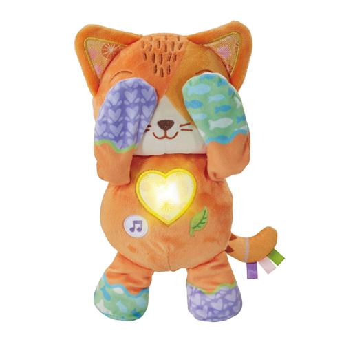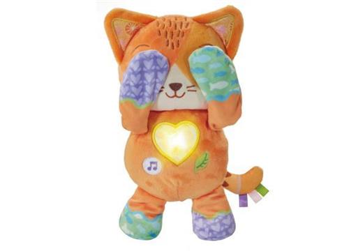 Laat jouw kleintje genieten van uren speelplezier met het VTech Baby Kiekeboe Katje! Met dit schattige interactieve knuffelkatje wordt spelen een feest. Druk op het hartje om een leuk kiekeboe-spelletje te spelen en luister naar de vrolijke reacties terwijl het katje haar pootjes beweegt en voor haar gezicht houdt. Door op de muziek-toets te drukken, worden 15 vrolijke melodietjes en 4 gezongen liedjes afgespeeld, en met de natuurgeluiden-toets kunnen verschillende natuurgeluiden geactiveerd worden.