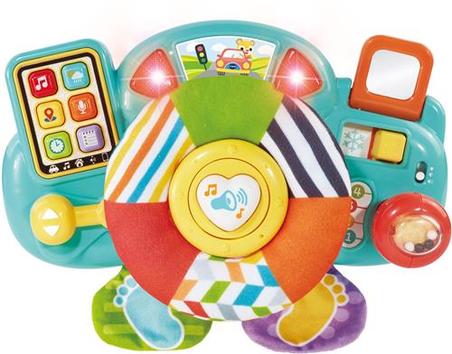 Het stuurtje stimuleert de tastzin en motorische vaardigheden door verschillende texturen te bieden. Daarnaast kunnen de kleine bestuurders het stuurtje draaien, op de richtingaanwijzers drukken en de auto-toets gebruiken om de fantasie te prikkelen.