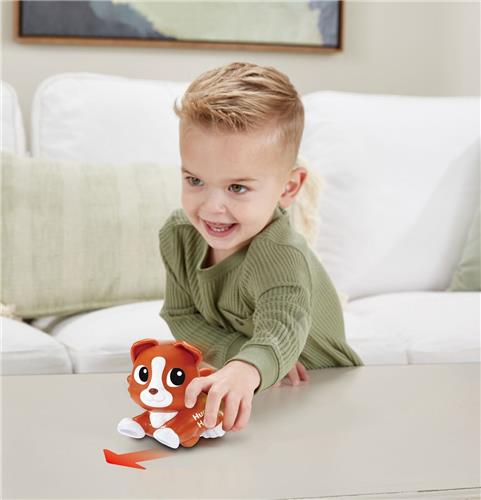 Maak kennis met de Vtech Rol & Dol Dieren en vooral met Hugo Hond! Dit schattige speeltje is ontworpen om uw kind te vermaken en te laten leren. Druk op het hartje voor leuke weetjes en raak Hugo's wang aan om blafgeluiden, kusjes en zelfs een vrolijke giechel te horen. Laat deze knuffelbare hond vrolijk draaien en rollen over de vloer en kijk hoe hij steeds weer opnieuw de glimlach op het gezicht van uw kind tovert!