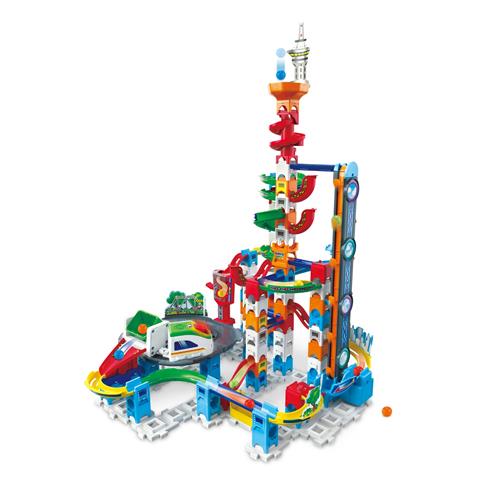 De VTech Marble Rush Super Sky Tower Set XL300E knikkerbaan is een geweldig cadeau voor kinderen vanaf 4 jaar en kan zowel binnen als buiten worden gebruikt. Beleef samen met je kinderen eindeloos knikkerplezier met deze uitgebreide knikkerbaan van VTech!