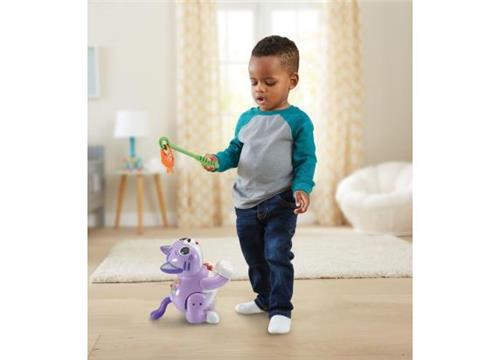 Speel en leer met de VTech Speel met mij Kitten! Deze schattige kitten biedt twee speelstanden om kleine kinderen aan te moedigen om te ontdekken en te leren. Met vrolijke reacties leert je kindje spelenderwijs over cijfers, kleuren en emoties. De kitten beweegt naar voren en kan zelfs op haar achterpoten staan. Beweeg het kattenspeeltje voor de kitten en kijk hoe ze erop reageert met een schattig miauwtje. Met 3 interactieve toetsen kunnen grappige geluiden, vrolijke zinnetjes, melodietjes en liedjes worden afgespeeld.