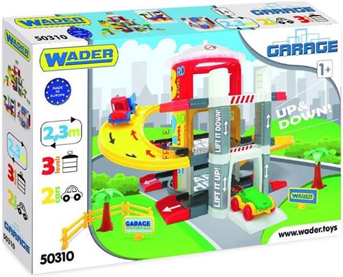 De Wader Garage met lift en 3 verdiepingen is ideaal om al je speelgoedautootjes in kwijt te kunnen: met de extra verdiepingen is er meer dan voldoende plaats. Parkeer je wagen waar je wil, of breng hem met de lift naar boven. Inclusief twee speelgoedauto´s. Kleur: multicolor, Geslacht: junior, Leeftijd: vanaf 1 jaar en ouder, Materiaal: kunststof. Afmetingen: 59 x 39,5 x 15 cm (L x B x H), Afmetingen totaal: 2,3 meter.